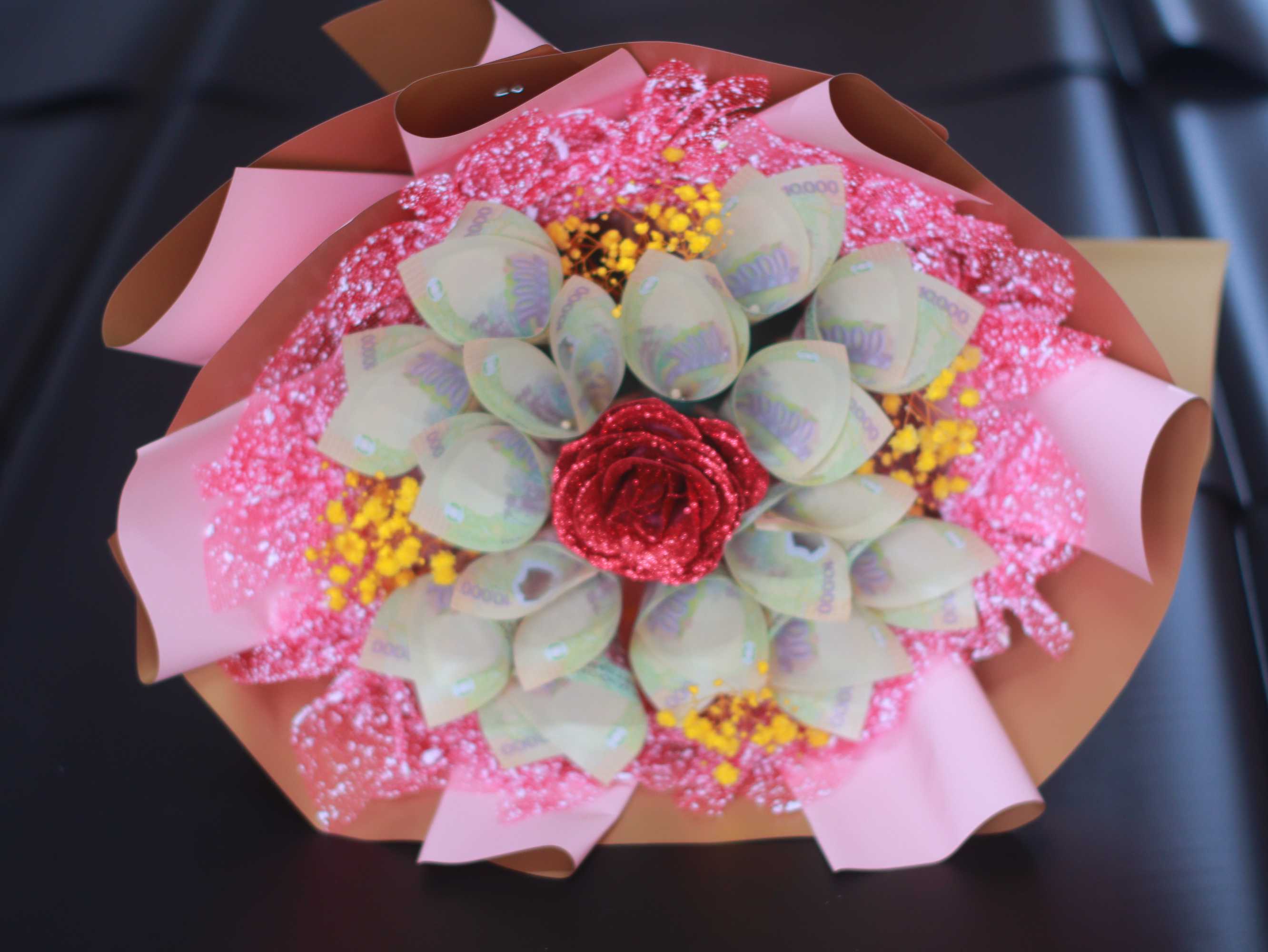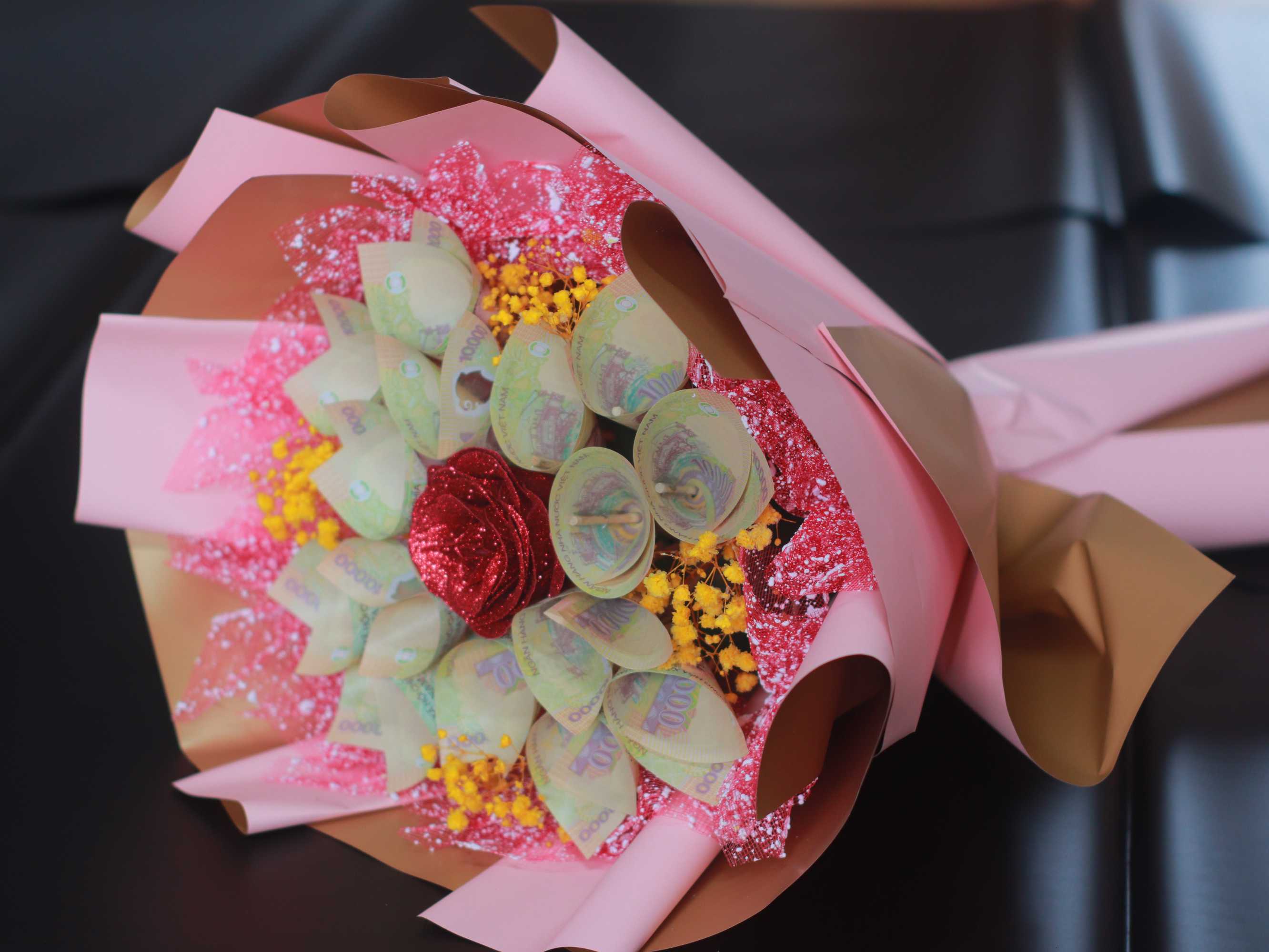 • Chọn lọc kĩ lưỡng 15 tờ tiền 10K & giấy, hoa trang trí đẹp nhất